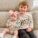 Stripe boutique, long sleeve t-shirt bubbles come in light blue, lime green, green, navy (almost black), gray, red, teal, yellow, light pink, and lavender. Embroidered with a name in your color choice and font choice. Font shown is "bubbly." Snaps at bottom.